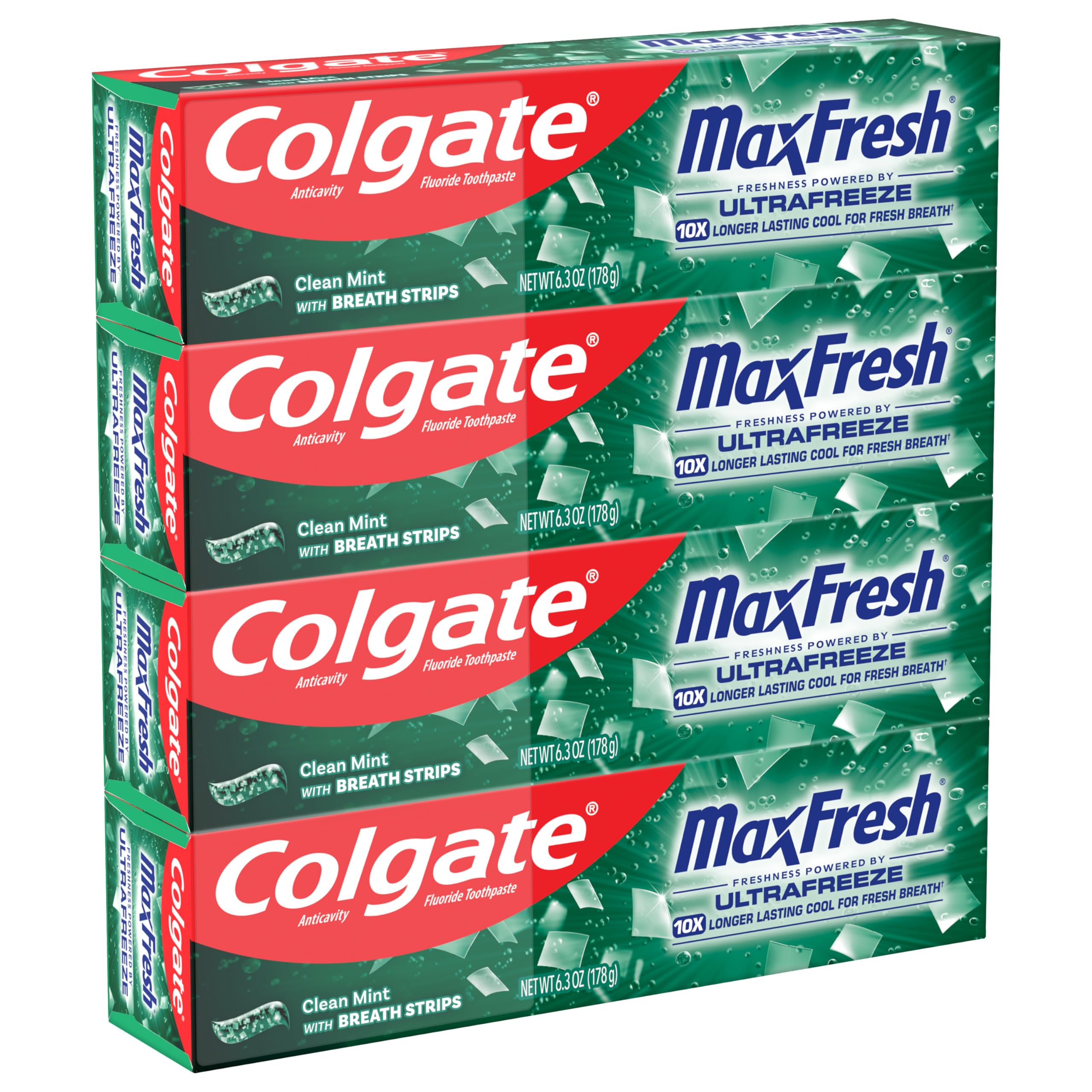 • Four 6.3 oz tubes of Colgate Max Fresh with Whitening Toothpaste, Clean Mint