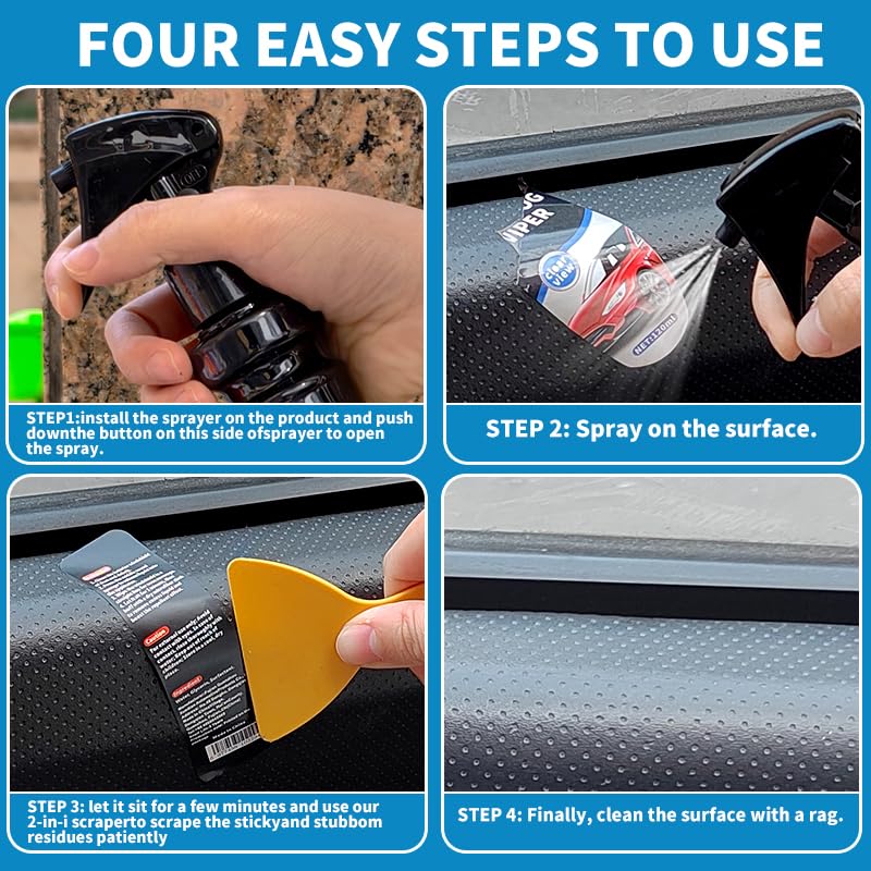 2️⃣ 【Surgical-Precision Removal Tools】 Kit includes: ✓ Professional Plastic Razor Blade Scraper ✓ 2x 1200GSM scratch-proof towels ✓ 360° spray nozzle for spray for tinted windows Proven to remove 98% of hard glue remover tasks with zero swirl marks.